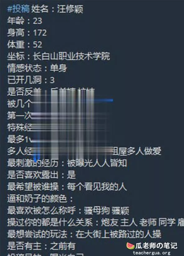 吉林长白山职业技术学院反差婊:汪修颖 自曝自己的反差经历,求羞辱
