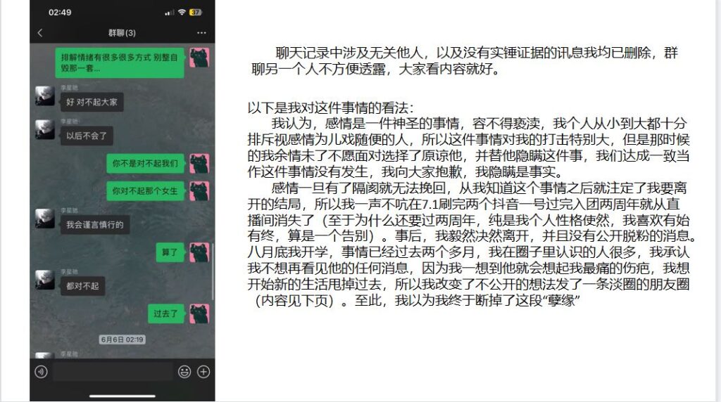 这位男网红打着“单身”人设,靠粉丝打赏维持流量,却在学校里与女生暧昧不清,还与榜一那位女粉保持若即若离的关系。后来那位榜一女粉揭露真相,发布长文并配上PPT,愤怒指控他是个两面派渣男。如今,这位在抖音拥有280万粉丝的男网红疑似已“塌房”。