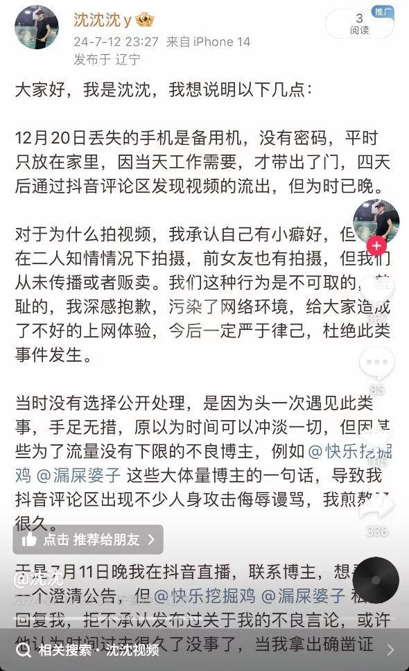 现在的网红圈真是混乱。这位尚未成名的抖音男网红,在拍摄与同业者的私密视频时,由于管理不当,视频意外曝光。实际上,这位男网红在外网出售自己的男同做i视频以此谋利,被发现后曝光他本人却说是因为手机丢失导致被造谣。