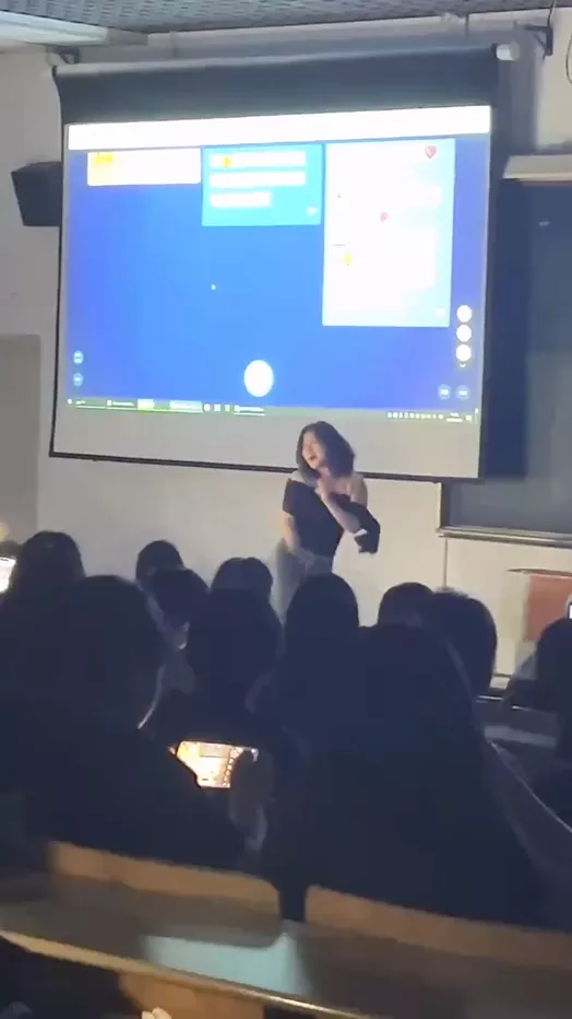 这是为了学生能更喜欢上课搞出的攒劲小节目?身材妖娆穿着性感的学姐,在讲台上跳起了擦边舞蹈,引得一阵阵欢呼。