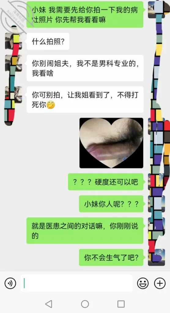 我有点太直接了,但是开始她的反应让我绝的可以这么做啊… 她让我别拍的时候,照片已经发过去了,如果我要是先看到的话,可能就不发了,最后就是不回复我了…我以为对于她来说这都是小儿科,她只是觉得这是医生与病人直间的交流 只是最后的这句语音让我回味了许久…… 姐夫,你是不是经常手银…