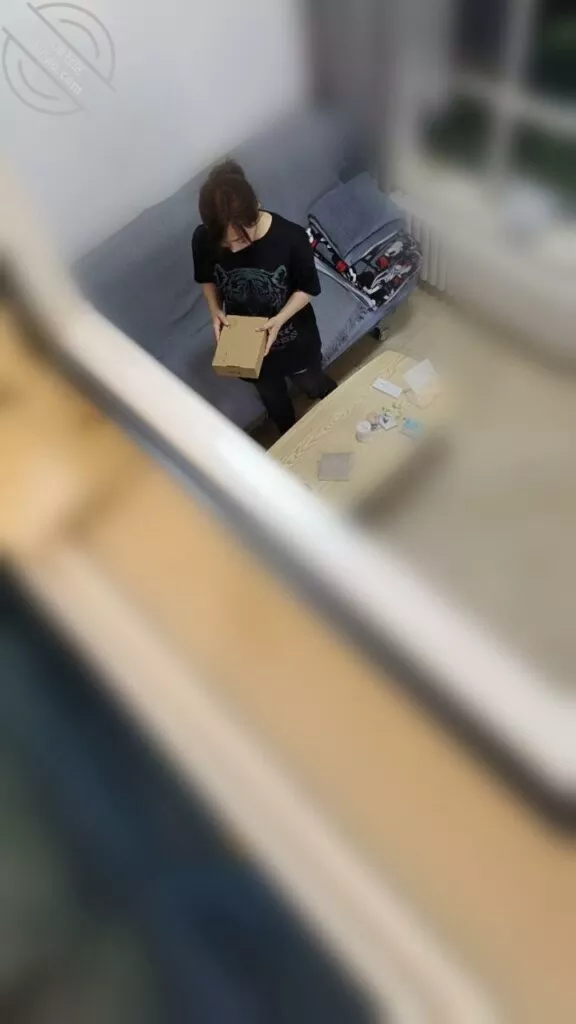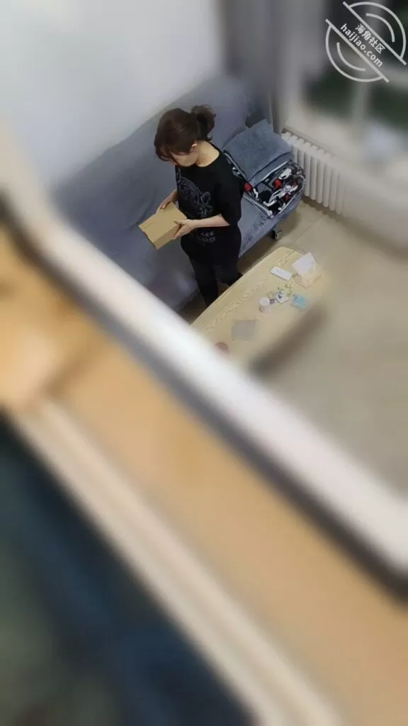 我在楼上悄悄的看着这一切,静静的等待着,她打开盒子那一刻,惊讶的表情! 进门脱掉外套就开始利索的收拾起来屋子,小姨子一向是这样,离婚以后把这里当成了她第二个家,每每来到这,收拾屋子成了她一种生活上的习惯,她似乎并没有注意到那个盒子,我在焦急的等待着,在阁楼上等待着注视着 这一切。大约10多分钟 小姨子收拾完屋子,坐在了客厅的沙发上,开始注意到这个盒子,我感觉那手机记录下了这一切,以上帝视角偷拍了几十秒,无奈时间太短,只能以照片的形式给你们发出来了