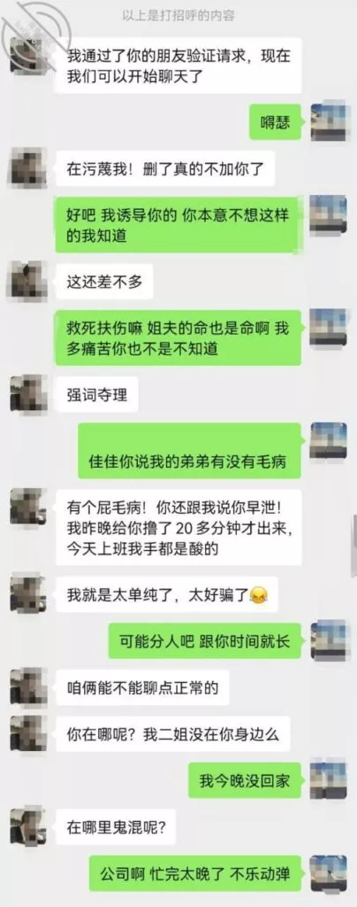 小姨子直接就用专业知识回复了我,而且一点没有觉得这有什么,反而我此刻尴尬及了 最后语音小声笑着跟我说:姐夫,你是不是经常手银… 我赶紧说我没有这习惯啊 挽回一下自己在她心目中的形象 其实手银那还不是经常的嘛,你知不知道那都是因为你。看到小姨子这样说,我胆子更大了,继续跟她聊了起来,心里当时就在想,我要给她发鸡的照片,继续试探,看她的反应,万万没想到,不回复我了!不会生气了吧?有点玩大了…