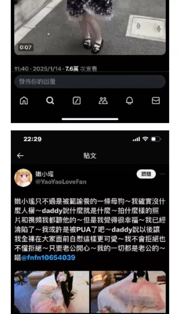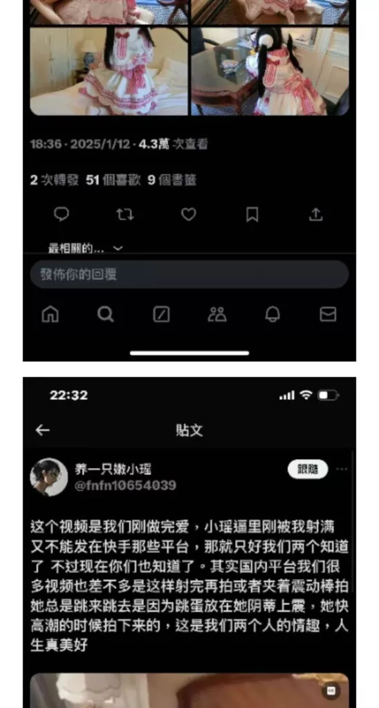 快手126万粉丝网红嫩小瑶,一米五的身材加上极度幼态的长相和体态,自我打造已婚LL人设,在快手等平台分享婚后生活,LL+人妻属性真真就成为焦点。然而在内地社交平台打造的萌系形象,却在外网以夫妻身份当起了网黄福利姬,清纯萌系的人设瞬间崩塌。