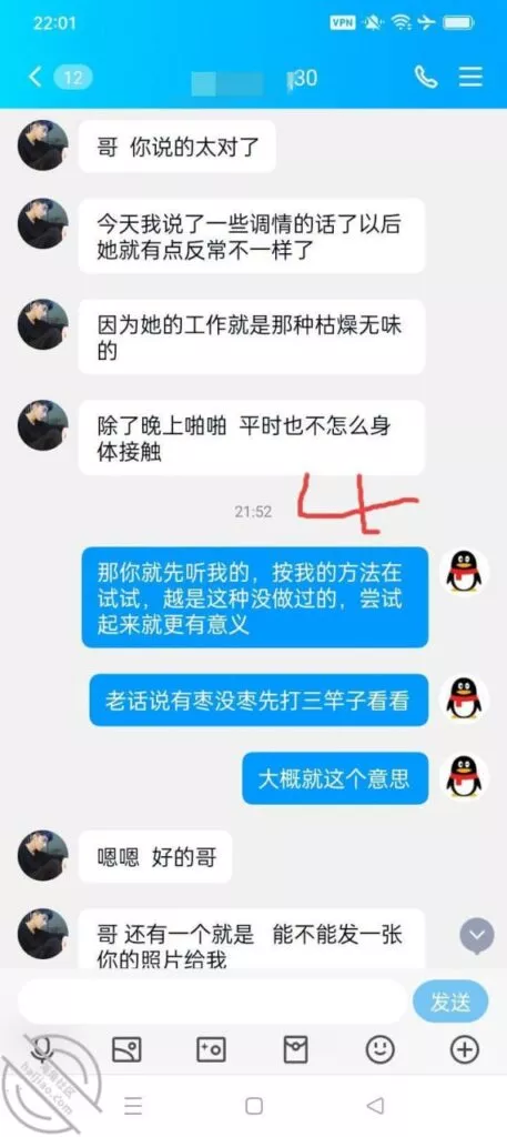 本来呢,我没当回事,因为我感觉这种情况的很多,最后都是不了了之,这个群友是新进群的,再别的同城群也没见到,应该是小白类型的,但是身上这股不折不扣的劲,让我感觉有点意思了,如果我能引导他成功开发老婆,我觉得还是蛮有意思的一件事,看看能不能跟上进度看看,怎么把良家开发成荡妇的