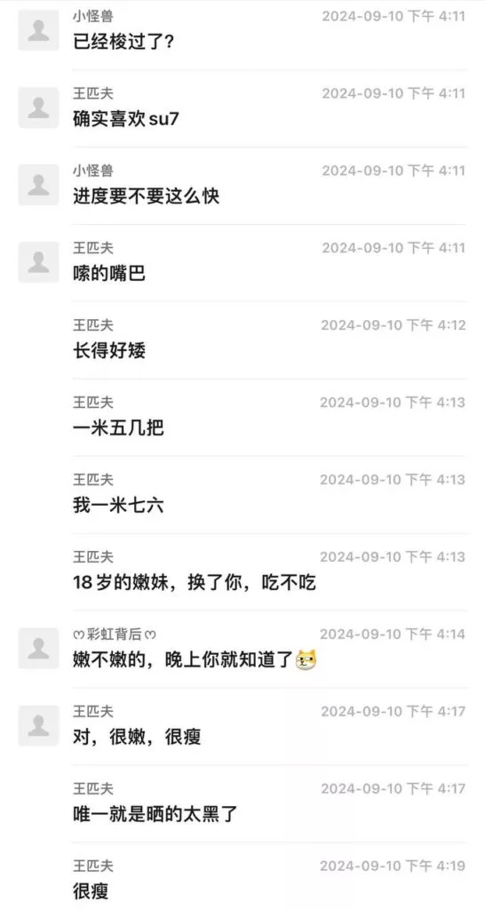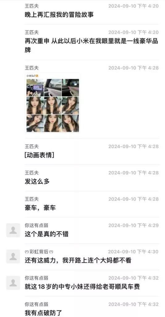 又骗我买小米su7?网约车群聊爆料嫩妹为了坐su7奉献身体